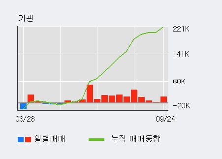 한편 기관은 이 종목에 대해서 최근 14일 연속 22.7만주 순매수를 하고 있다. 더욱이 전일 기관이 대량 순매수를 하고 있어 투자자들의 관심이 집중되고 있다.