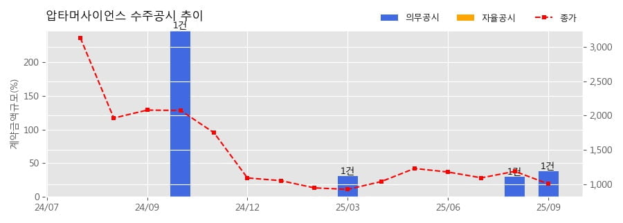 계약 상대방은 국내 신약 개발 기업이고, 계약금액은 4.2억원 규모로 최근 압타머사이언스 매출액 10.8억원 대비 약 38.51 % 수준이다. 이번 계약의 기간은 2025년 09월 26일 부터 2025년 12월 31일까지로 약 3개월이다.