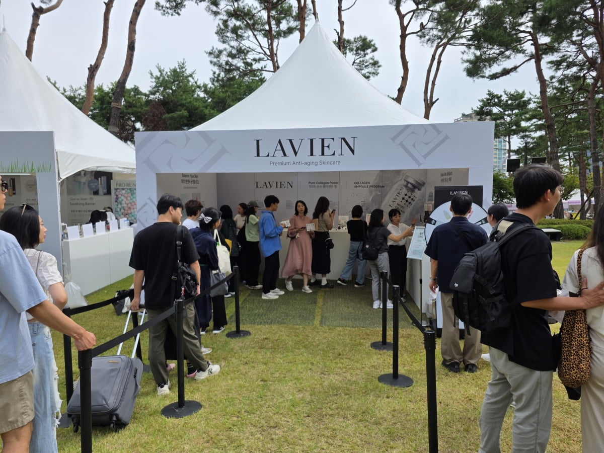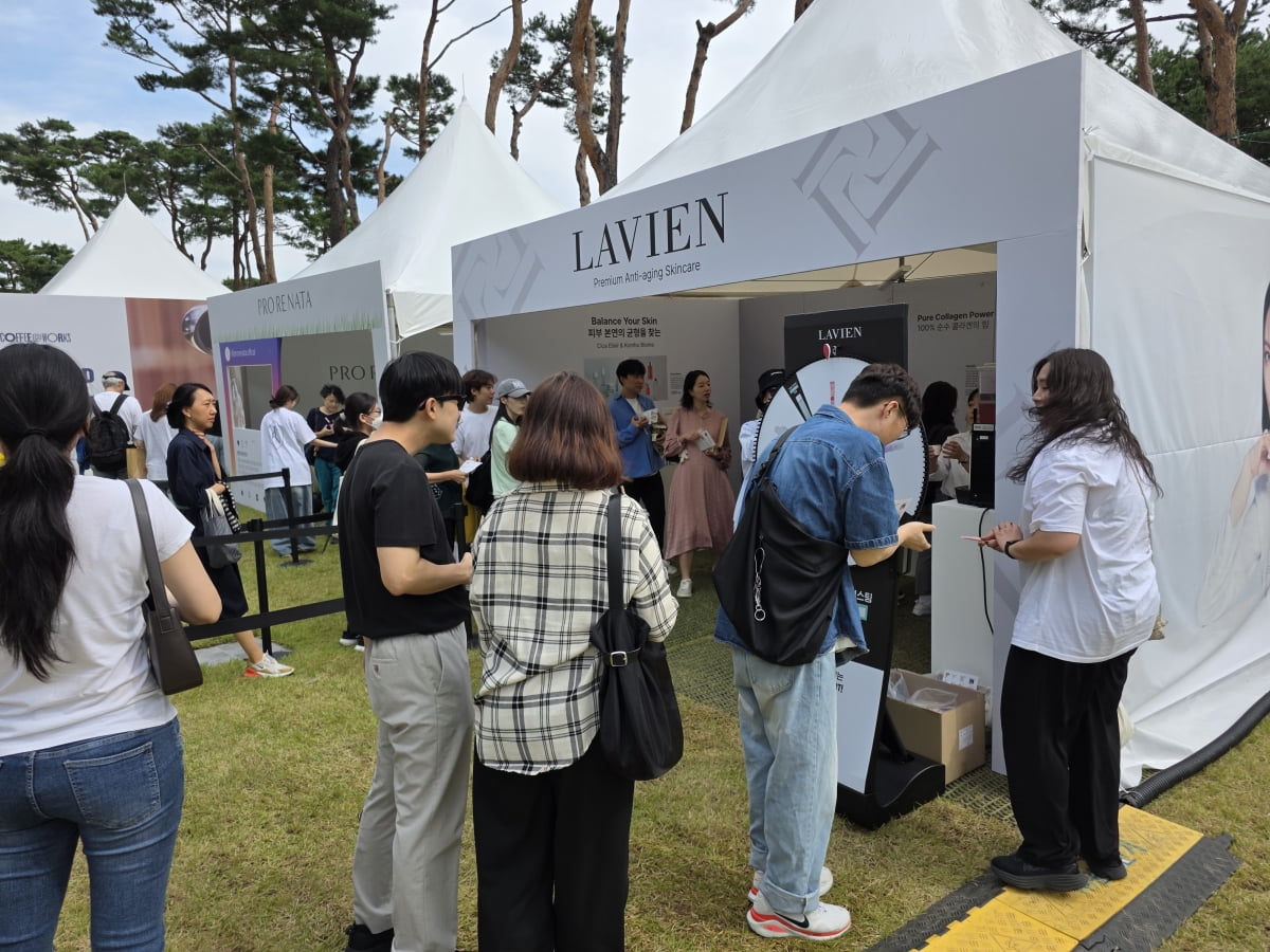 올해 청춘, 커피 페스티벌에서 가장 눈길을 끈 부스는 'K뷰티 부스'다. 프로레나타, 라비앙 등의 뷰티 업체들이 잔디광장에 자리했다. 라비앙은 1세대 쇼핑몰 핑크시크릿의 창업자인 박현선 라비앙 대표가 2017년 출범한 고기능성 화장품 브랜드다. 박 대표는 프로레나타의 대표인 배우 이필립의 아내이기도 하다.