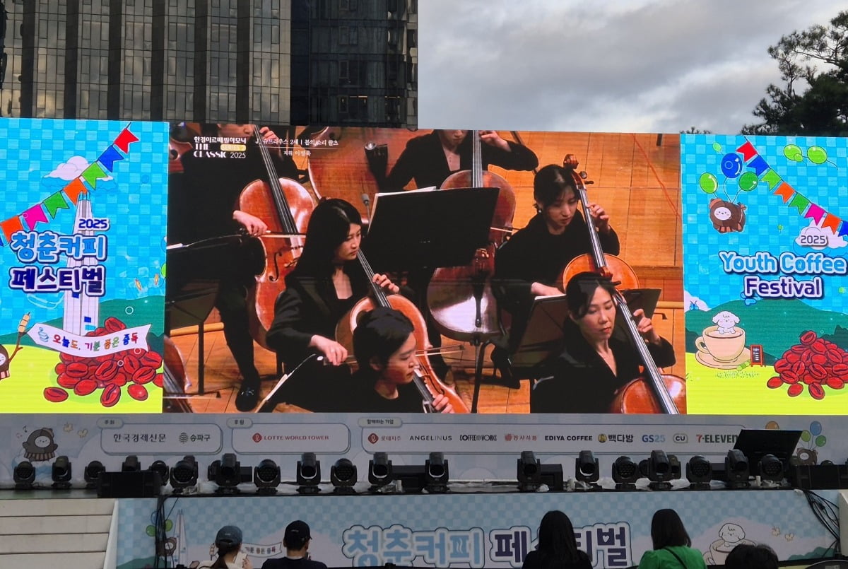 약 2000㎡(약 606평) 규모의 부지에 마실 거리, 즐길 거리 등 30여 개 기업이 참여하는 ‘2025 청춘, 커피 페스티벌’ 현장에 한경아르떼필하모닉의 공연 실황 영상이 상영되면서다.