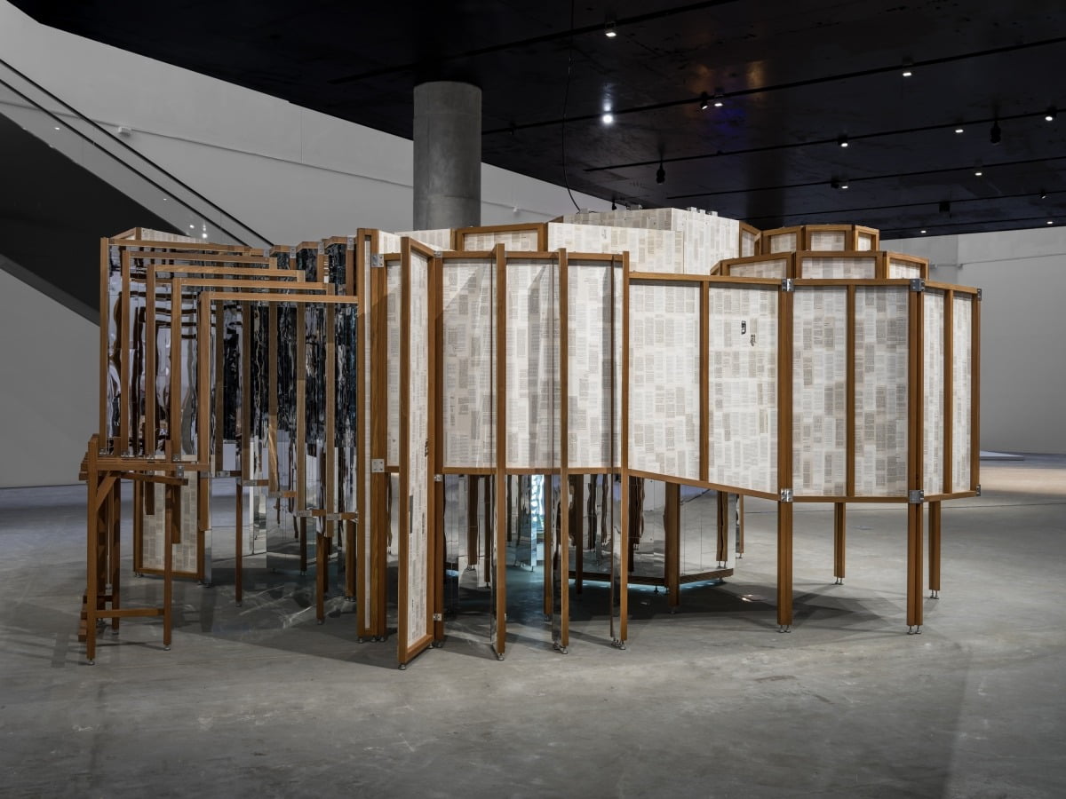 리움 전시에서 가장 먼저 눈에 띄는 것은 거울을 활용한 대형 설치 작품이다. 이불은 거울 조각을 불규칙하게 이어 붙여 미로 같은 집을 지었다. 내부로 들어가 끝을 알 수 없는 공간을 탐색하는 동안 분절된 나의 모습이 끝없이 증식하며 나를 둘러싼다. 거울 속의 시선은 다름 아닌 작품을 바라보는 나의 시선이다. 어지럽지만, 동시에 빈 공간에서 낯선 나와 마주하는 시간이다.