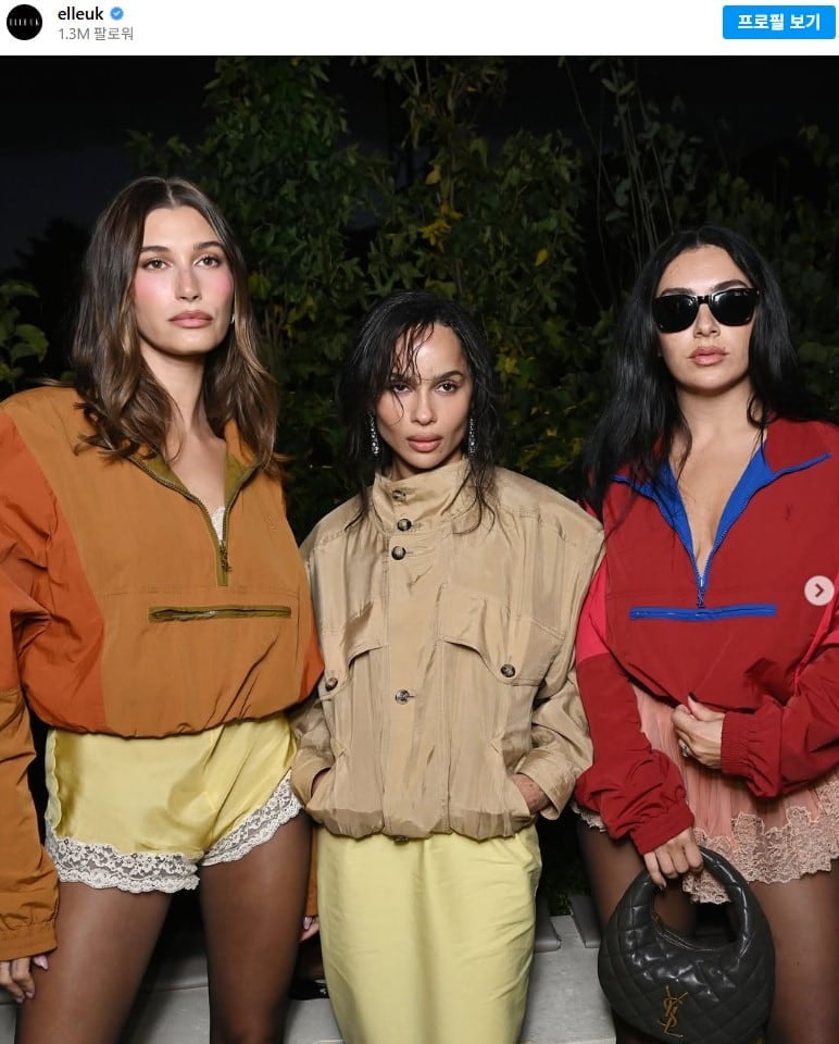 엘르 UK는 지난달 30일(현지시간) 공식 인스타그램에 전날 프랑스 파리에서 열린 생 로랑 여성복 2026 S/S 컬렉션 쇼에서 촬영한 단체 사진을 공개했다. 이 사진에는 모델 헤일리 비버, 모델 겸 배우 조이 크라비츠, 잉글랜드 출신 싱어송라이터 찰리 xcx 모습이 담겼다.