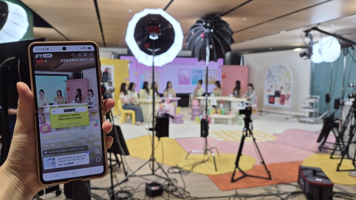 지난달 29일 서울 성동구 ‘올리브영N성수점’ 4층에 있는 방송 스튜디오. 오후 8시 방송 시작과 함께 고요하던 공간이 밝은 리액션과 박수 소리로 가득 채워졌다. 거대한 조명이 향한 세트장에는 출연자들이 화장품을 들고 제품을 소개하고 있었고 한쪽 화면에는 실시간으로 소비자 댓글이 쏟아졌다. 이를 확인한 출연자들은 곧바로 반응을 주고받으며 시청자와 자연스럽게 대화를 이어갔다.