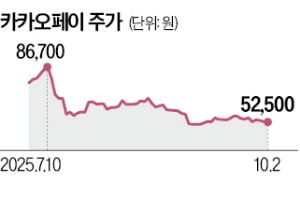 3일 한국거래소에 따르면 2일 카카오페이는 전 거래일보다 1.13% 내린 5만2500원에 거래를 마쳤다. 같은 날 코스피지수가 2.7% 급등했지만 카카오페이 주가는 반대로 움직였다. 지난 6월 25일만 해도 이 종목 주가는 스테이블코인 관련 기대에 장중 11만4000원까지 뛰었다. 하지만 이후 원화 스테이블코인 사업의 실효성 논란이 제기되며 약 3개월 만에 53% 넘게 급락했다.