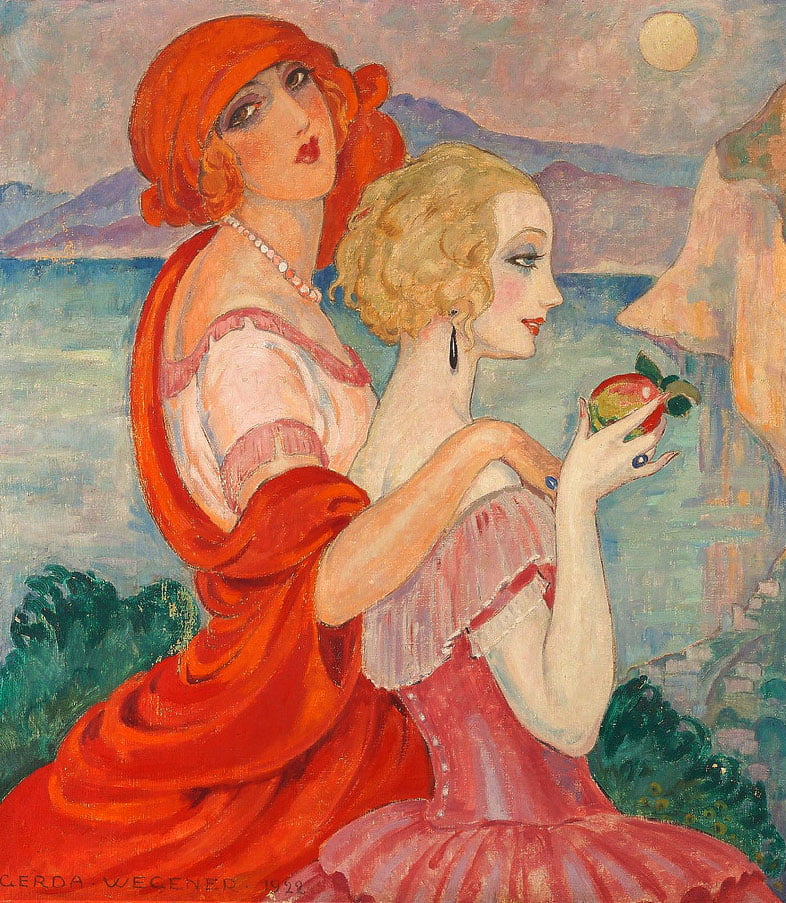 1912년, 두 사람은 파리에 정착해 화가로 활동하기 시작했습니다. 덴마크에서는 에이나르가 더 훌륭한 화가로 인정받았지만 파리에서는 게르다의 인기가 남편을 앞질렀습니다. 파리 시민들의 입맛에 맞는 세련되면서도 독특한 스타일 덕분이었습니다. 부자들은 앞다퉈 게르다의 그림을 사들였습니다. 그녀의 그림은 각종 광고와 신문을 장식했습니다.
