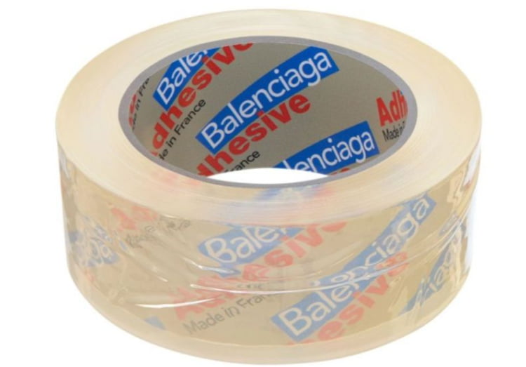 투명 레진으로 만들어진 이 제품 내부와 외부에는 '발렌시아가 어드허시브(Balenciaga Adhesive)'라는 문구가 쓰여 있다.