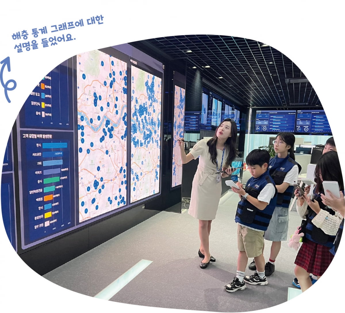 세스코 본사에는 커다란 모니터가 가득한 곳이 있습니다. 그곳에는 해충 관련 통계 그래프도 있는데요, 어느 지역에 어떤 해충이 출몰했는지 아주 자세하게 나와 있었습니다. 세스코 바이오 센터에서는 살충제와 살서제를 개발합니다. 살충제는 해충, 살서제는 쥐를 잡는 약입니다. 세스코에서는 해충뿐만 아니라 바이러스도 연구한다고 합니다.
