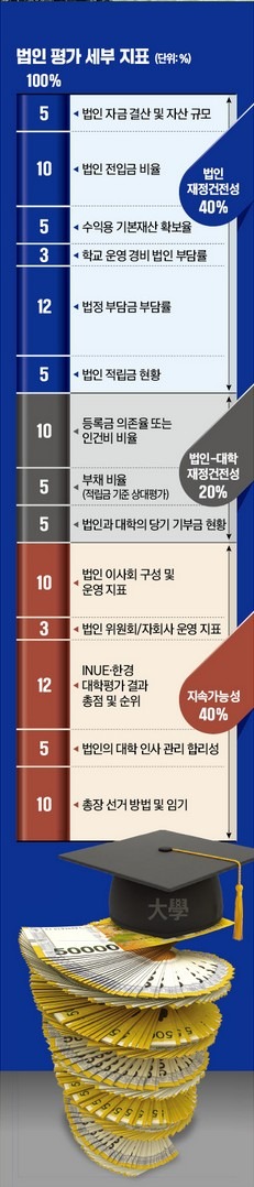 한국의 사립대는 세계적으로 보기 드문 운영 구조를 갖추고 있다. 대학이 독립된 비영리 법인으로 운영되는 미국, 영국과 달리 한국은 ‘학교법인’이 대학을 소유하고 운영하는 구조다. 법인의 재정 여력이 곧 대학의 재정 안정성과 직결되는 이유다. 학령인구 감소와 재정 악화로 대학들이 구조조정과 통폐합 압력에 시달리면서 대학을 지탱하는 ‘법인 체력’을 주목해야 할 필요성이 커지고 있다.