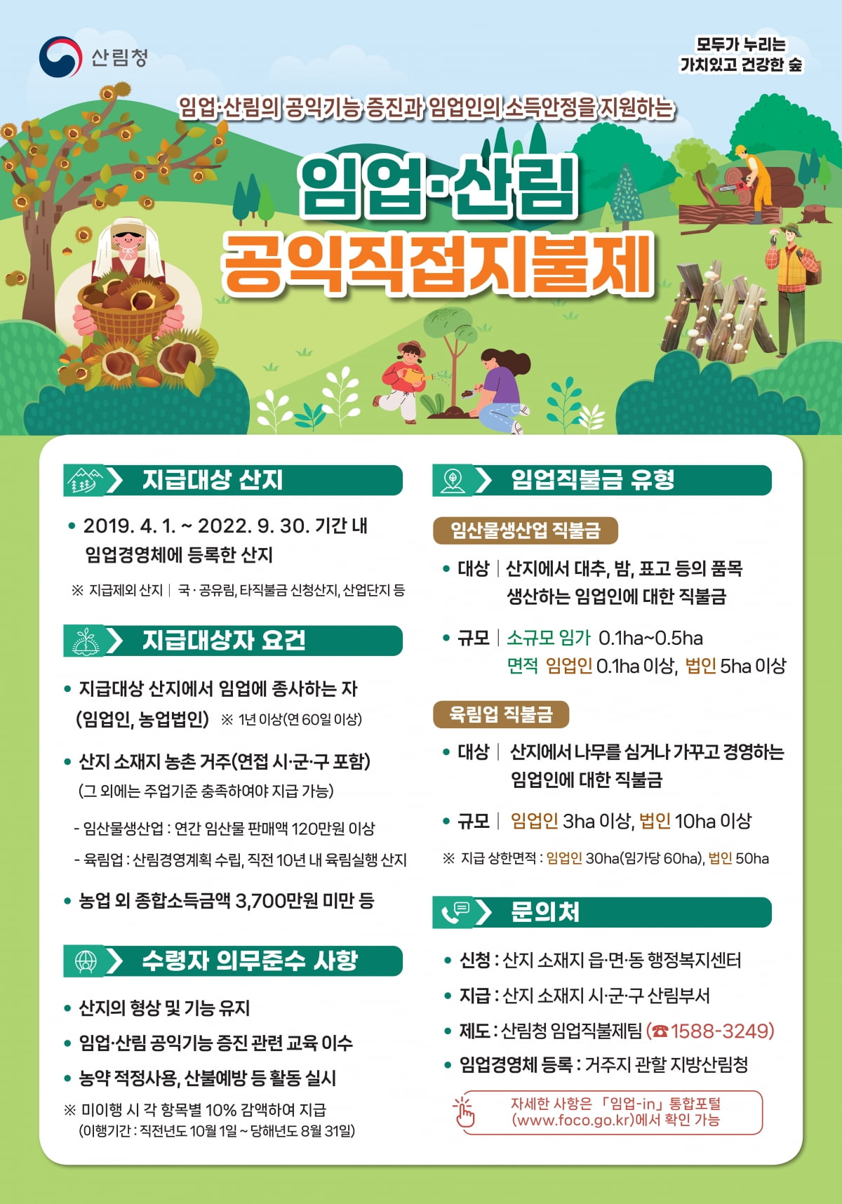 산림청은 임업 직불금을 신속히 지급할 수 있도록 각 시도에 교부금 지급을 완료했다.