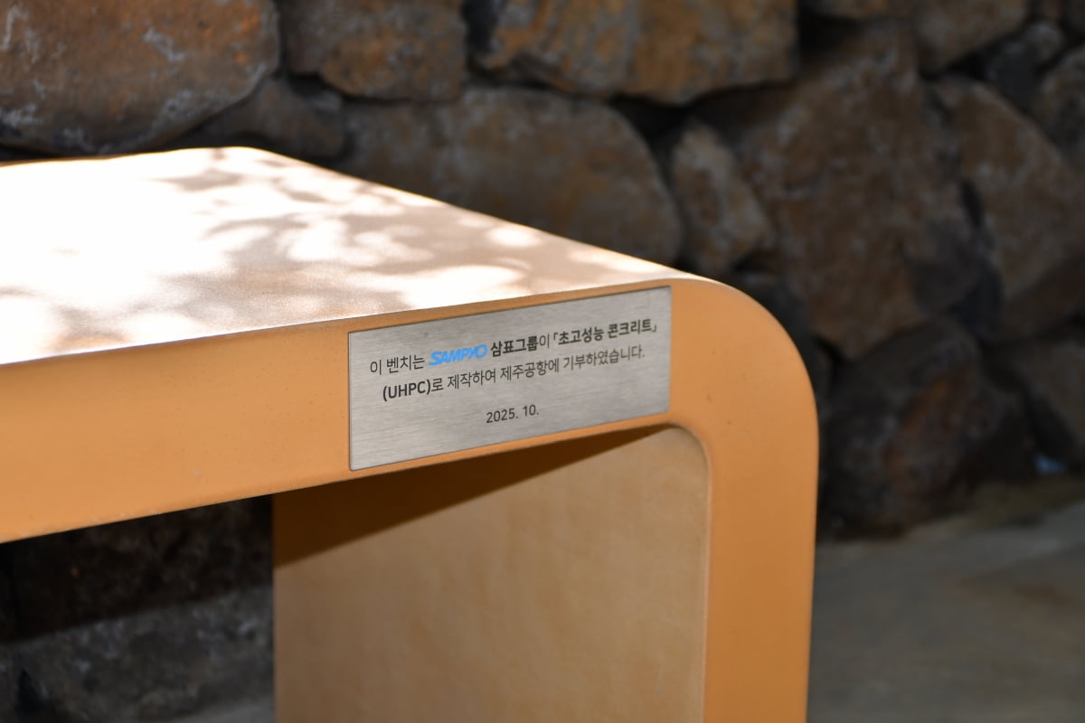 삼표그룹이 친환경 신소재 공법인 초고성능 콘크리트(UHPC)를 적용해 제작한 벤치를 제주국제공항 1층 다목적 야외쉼터에 기부했다고 16일 발표했다.