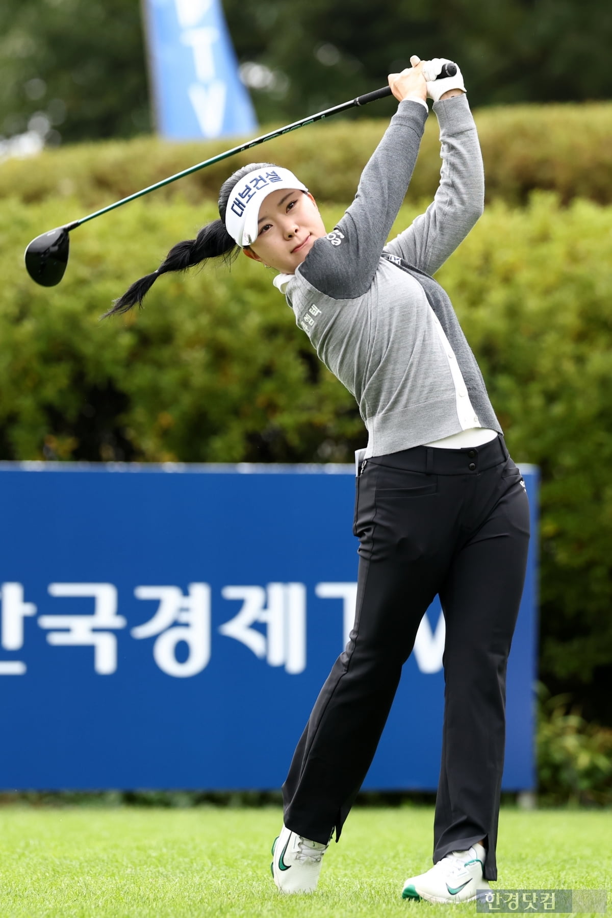 KLPGA(한국여자프로골프)투어 '상상인 · 한경 와우넷 오픈 2025'(총상금 12억 원) 3라운드 경기가 18일 경기 양주시 레이크우드CC(파72·6605야드)에서 열렸다. 대회에 출전한 서어진이 1번 홀에서 티샷을 하고 있다.변성현 한경닷컴 기자 byun84@hankyung.com