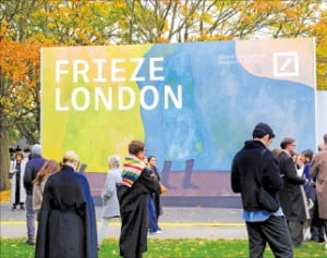 프리즈 아트페어 본고장인 영국 런던. 지난 15일 오전 VIP 프리뷰를 시작으로 5일간 계속된 프리즈 런던 2025는 영국 미술시장 침체를 체감할 수 없을 만큼 뜨거운 에너지로 가득했다. 43개국 168개 주요 갤러리가 참여한 이번 페어는 개막 첫날부터 폐막일까지 내내 관람객들로 붐볐다. 영국에 기반한 신진 작가와 전 세계에서 온 신진 갤러리를 전면에 내세운 동선, 남미와 아프리카 예술 등에 집중한 특별 세션, 기후 위기 극복에 동참하는 기부 움직임 등이 새로운 관람객을 아트페어로 끌어들이는 데 주효했다는 평가가 지배적이다.