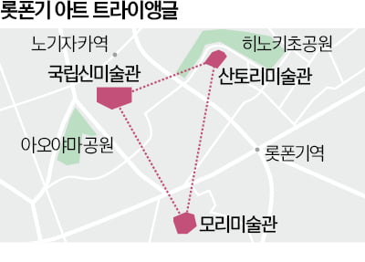 모리미술관은 초대형 전시관을 갖춘 인근의 국립신미술관, 전통과 현대의 조화로운 생활 속 미를 추구하는 산토리미술관과 함께 롯폰기 지역의 미술 중흥을 이끄는 미술관으로 꼽힌다. 이들 세 미술관은 꼭짓점을 이으면 삼각형 모양이 된다고 해서 ‘롯폰기 아트 트라이앵글’로도 불린다.