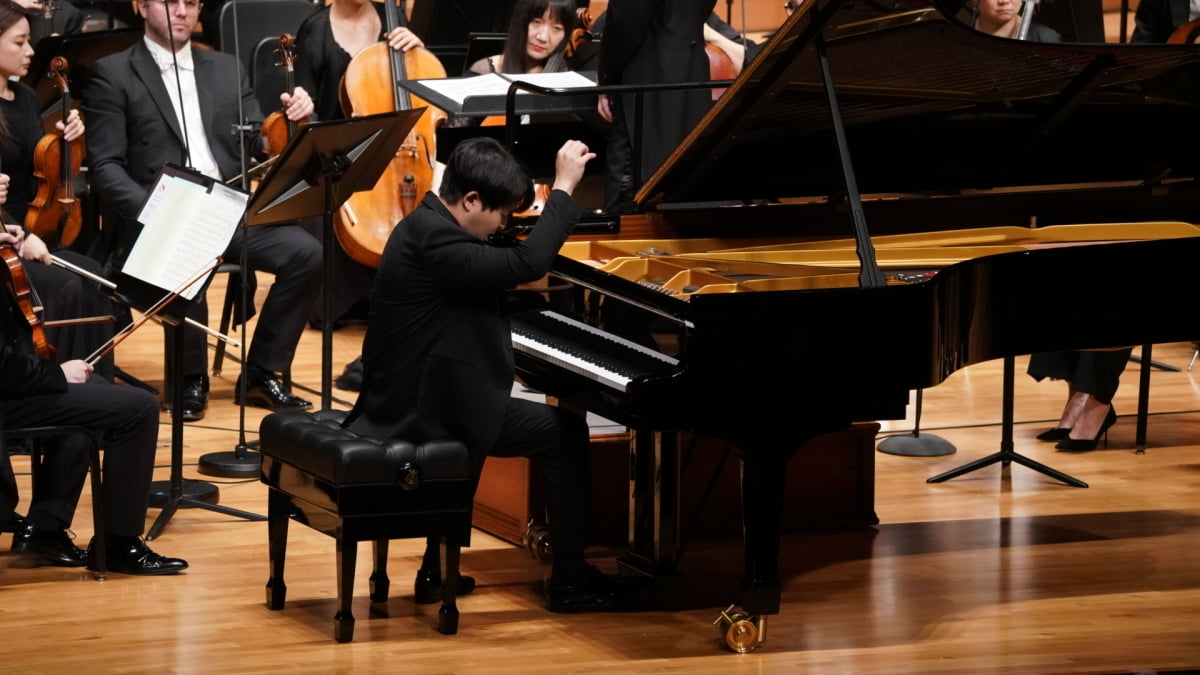 빠르고 열정적으로 연주하는 3악장은 악단과 협연자 서로가 조금은 달랐던 색감이 멋지게 어우러진 시간이었다. 바이올린과 목관 악기가 녹음이 피어나듯 싱그러운 소리를 내면 피아노가 깔끔한 소리로 초여름 같은 분위기를 냈다. 피아노와 바이올린의 아르페지오도 한 몸이 된 듯 긴밀하게 엮였다. 화려한 피아노 속주를 받쳐줄 땐 악단 전부가 합류해 폭발하듯 소리를 터트렸다. 연주가 끝나자 선우예권은 슈베르트 즉흥곡 3번 내림사장조를 앙코르로 들려줬다. 이 곡을 연주하겠다고 그가 말할 땐 무대 왼편 객석 앞열에서 팬들이 환호성을 쏟기도 했다. 선우예권은 멋쩍은 듯 웃었지만 피아노 의자에 앉았을 땐 담백하고 진중했다.
