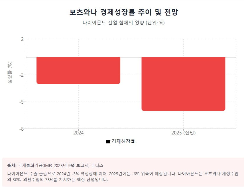 국제통화기금(IMF)은 지난 9월 보고서에서 "다이아몬드 생산의 추가적인 감소로 보츠와나 경제가 약 1% 위축될 것"이라고 전망했다. 무디스는 최근 "2025년 경제가 추가로 6% 위축될 가능성이 있다"고 경고했다.