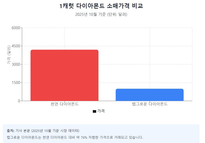 LGD의 가장 강력한 무기는 가격 경쟁력이다. 이달 기준, 표준적인 품질의 1캐럿 천연 다이아몬드 소매가가 약 4200달러 수준이다. 반면 물리적·화학적으로 동일한 LGD는 1000달러 이하에 거래됐다. 70~90%에 달하는 압도적인 가격 격차다.