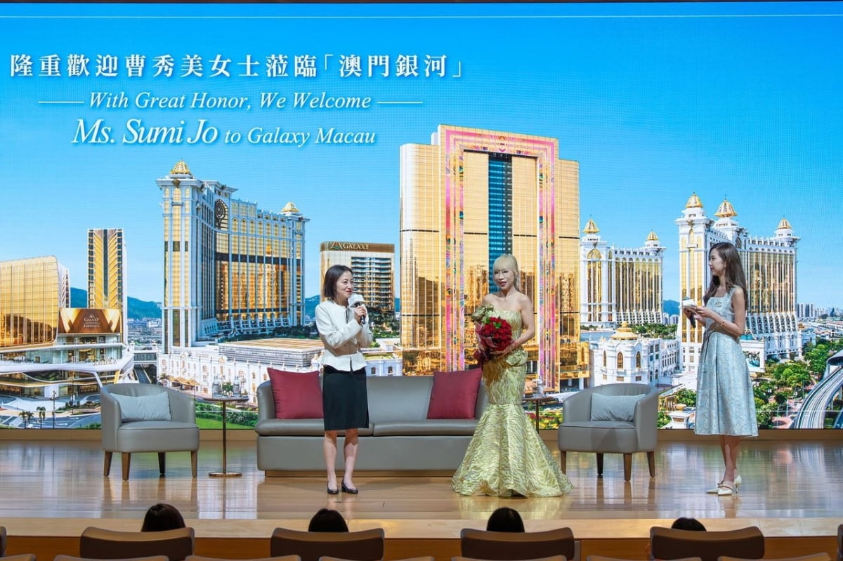 황금빛 호텔들로 빛나는 도시 마카오. 그 풍경을 닮은 듯한 금빛 드레스의 조수미가 취재진 앞에 섰다. 오는 12월 28일 마카오 최대 럭셔리 리조트 그룹 '갤럭시 마카오'가 여는 '갤럭시 뮤직 갈라: 매드 포 러브'를 앞두고서다.