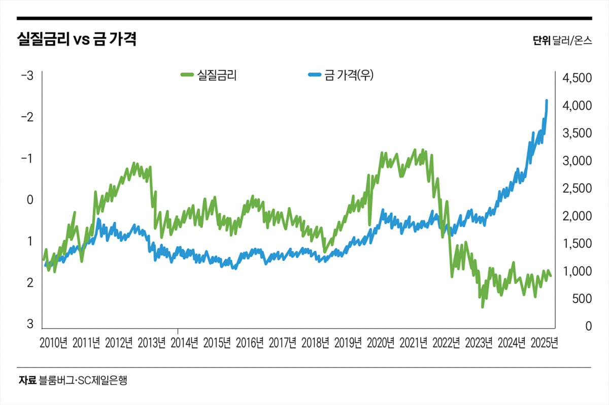워런 버핏은 2011년 벅셔해서웨이 주주서한에서 “금 1온스를 영원히 보유해도 결국 마지막엔 여전히 1온스를 소유하게 될 것”이라고 말했다. 이는 금이 현금흐름을 창출하지 않는 자산이라는 점을 강조한 것이다. 금은 이자를 지급하지 않기 때문에, 시장금리 자체가 금 보유의 기회비용이 된다. 그렇기에 금의 가치는 그 자체의 내재가치보다 다른 자산과의 상대가치, 특히 실질금리 수준에 크게 좌우된다.