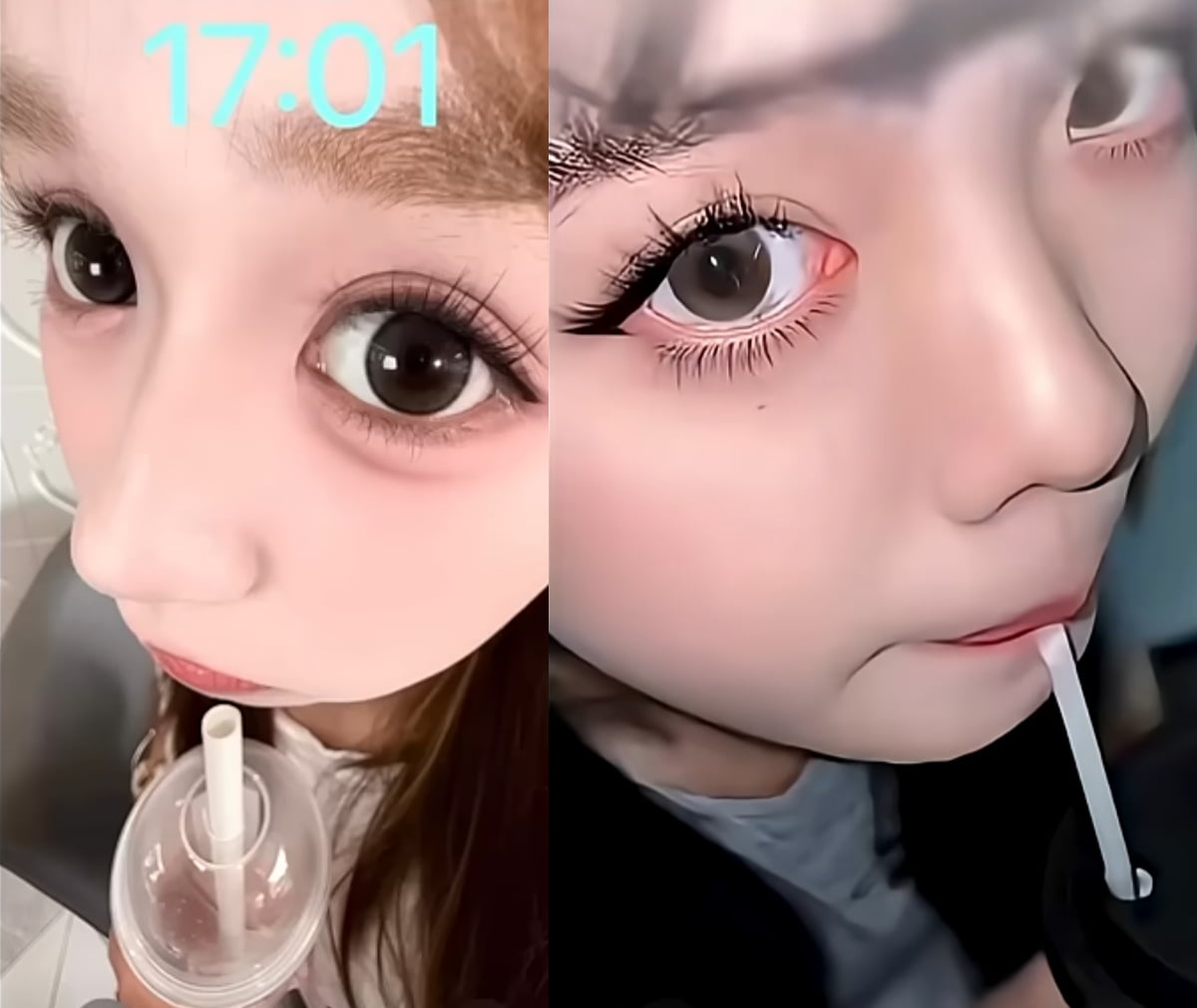 유튜버 '투데이뷰티팁'이 올린 "눈 2배 샷 찍는 법" 영상은 조회수 97만 회를 기록했다. 영상 속에서는 카메라를 코앞까지 들이대고 눈을 살짝 치켜뜨는 방식으로 "인형 눈 효과"를 극대화하는 법이 소개된다