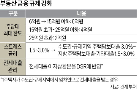 ‘전세 낀 매매’뿐 아니라 ‘빚을 내 집을 사는 것’도 까다로워졌다. 수도권과 규제지역에서 25억원 초과 주택을 구입할 목적으로 받는 주택담보대출은 최대 2억원으로 제한됐다. 15억원 초과 25억원 이하는 4억원까지 받을 수 있다. 15억원 이하 주택은 6·27 부동산 대책 때 적용한 최대한도인 6억원이 유지됐다. 무주택자와 처분조건부 1주택자는 담보인정비율(LTV) 40%를 적용받는다. 유주택자(0%)는 받을 수 없다.