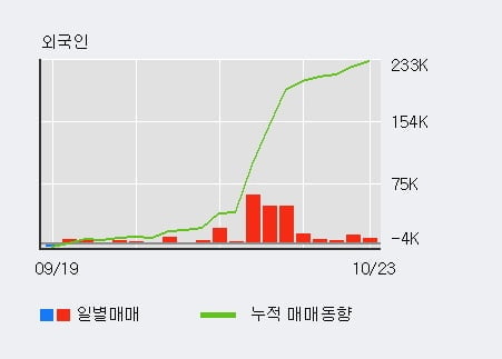 지난 한달을 기준으로 보면 외국인이 22.5만주를 순매수했고, 기관도 1.4만주를 순매수했다. 반면 개인들은 22.5만주를 순매도한 것으로 나타났다. 같은 기간 이 종목의 거래 비중은 외국인과 개인이 각각 45.2%, 40.1%로 비중이 높다.