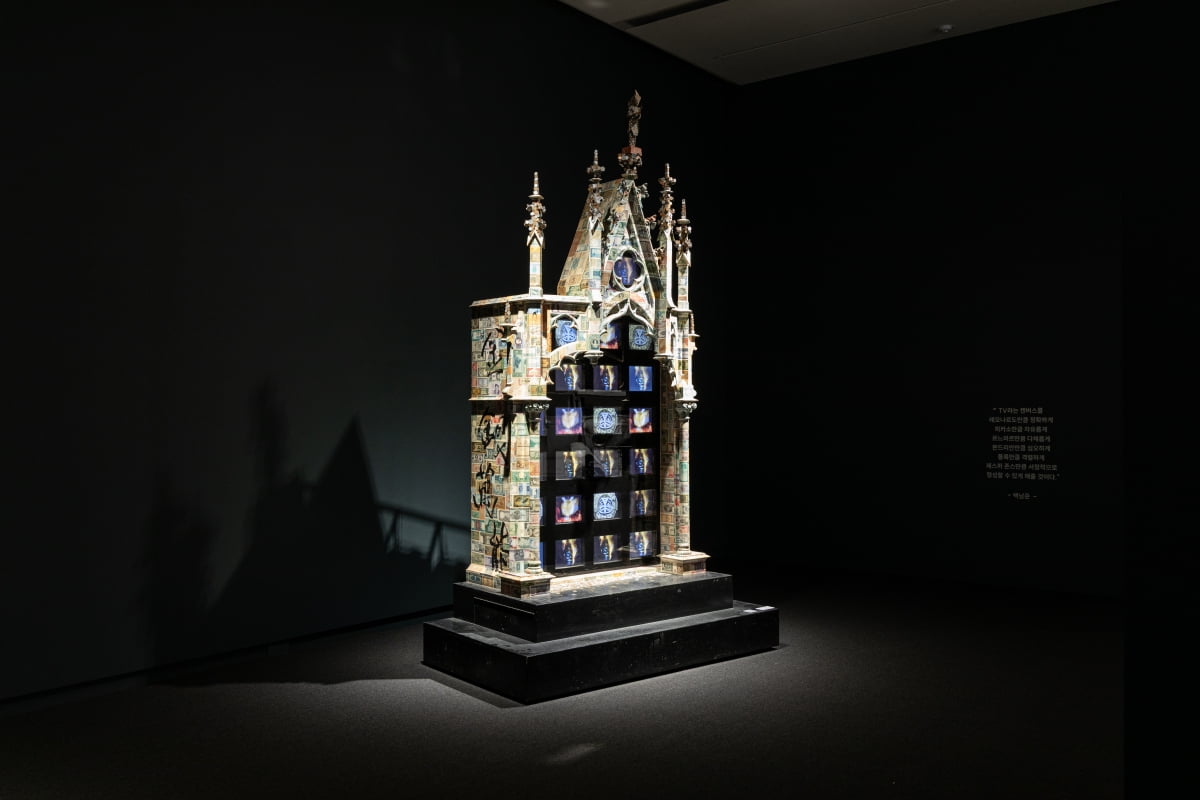 이 밖에도 1980~1990년대 백남준의 주요작이 관객을 기다리고 있다. 인터넷 시대를 예견한 작품 ‘전자초고속도로-1929 포드’가 대표적이다. 1929년식 포드 자동차 위에 나무로 만든 전통 가마를 배치하고 ‘전자초고속도로’라는 글씨를 붙였다. 이지우 우양미술관 학예연구사는 “백남준은 세계가 예술로 하나 될 수 있다고 봤다”며 “전통과 현대, 동서양, 과거와 미래가 교차하며 하나 되는 백남준 특유의 시각언어가 드러난 작품”이라고 설명했다. 전시는 다음달 30일까지.