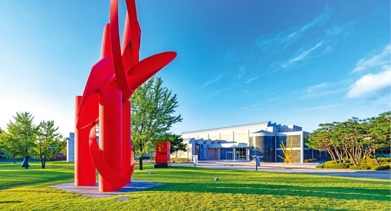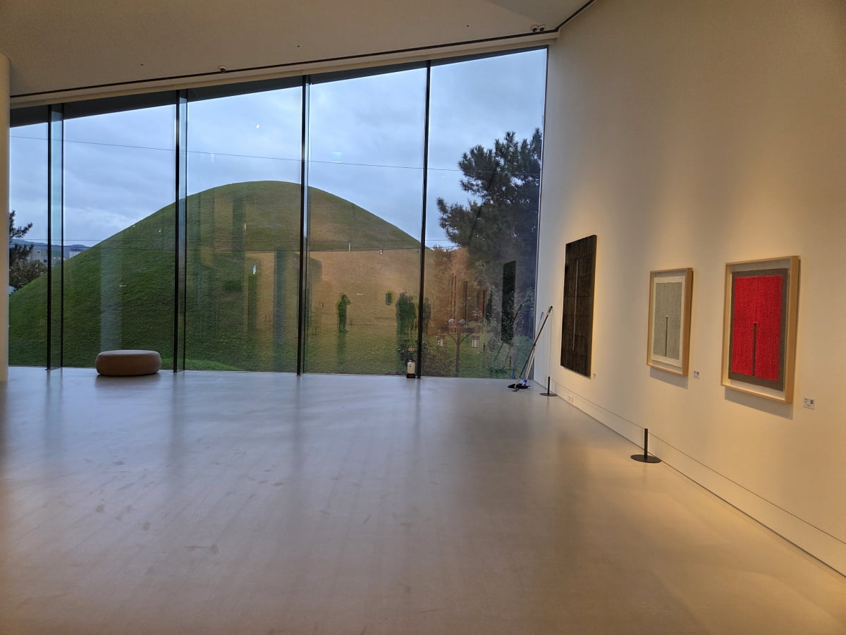 오아르미술관에서는 소장품 기획전 ‘잠시 더 행복하다’가 관람객을 맞는다. 지난 4월 개관한 이곳은 창 전체를 통해 고분이 보이는 ‘왕릉뷰 미술관’으로 입소문을 타며 개관 6개월 만에 18만 명의 관람객을 끌어모았다. 국내외 작품 49점이 나온 이번 전시에서는 이우환, 박서보, 하종현, 이배 등 한국을 대표하는 현대미술가들의 작품을 만날 수 있다. 미술관 설립자인 김문호 관장은 “미술을 잘 모르는 사람도 즐길 수 있는 공간이 됐으면 한다”고 말했다. 전시는 내년 3월 16일까지.