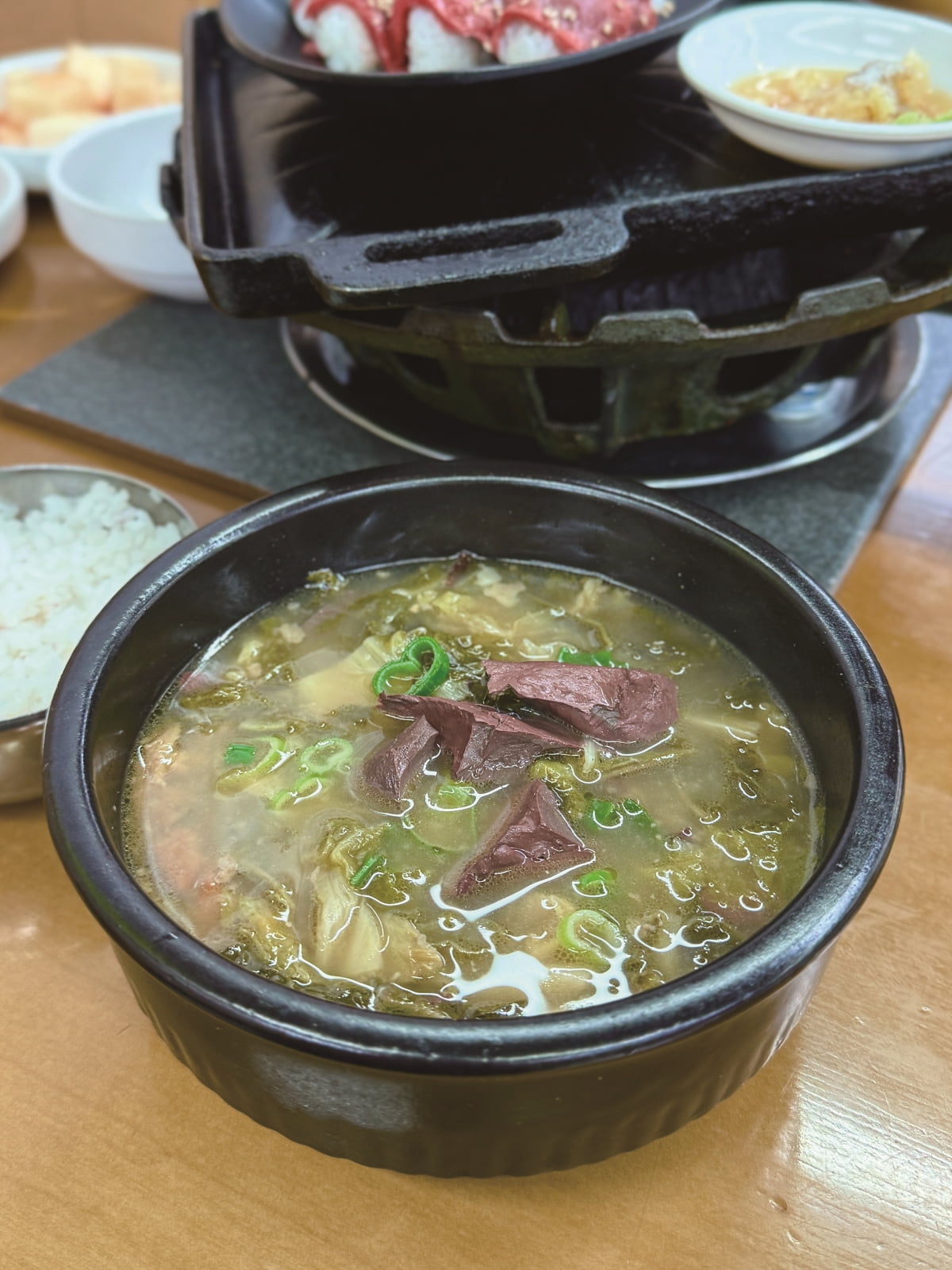 무엇보다 매력적인 메뉴는 소고기, 선지, 우거지 등이 듬뿍 들어 속까지 든든한 한우 암소 해장국. 요즘 물가로는 상상하기 힘든 2800원에 구수한 해장국을 맛볼 수 있다. 안양에 거주하는 70세 이상 어르신에게는 해장국을 무료로 제공하는 착한 식당이다.