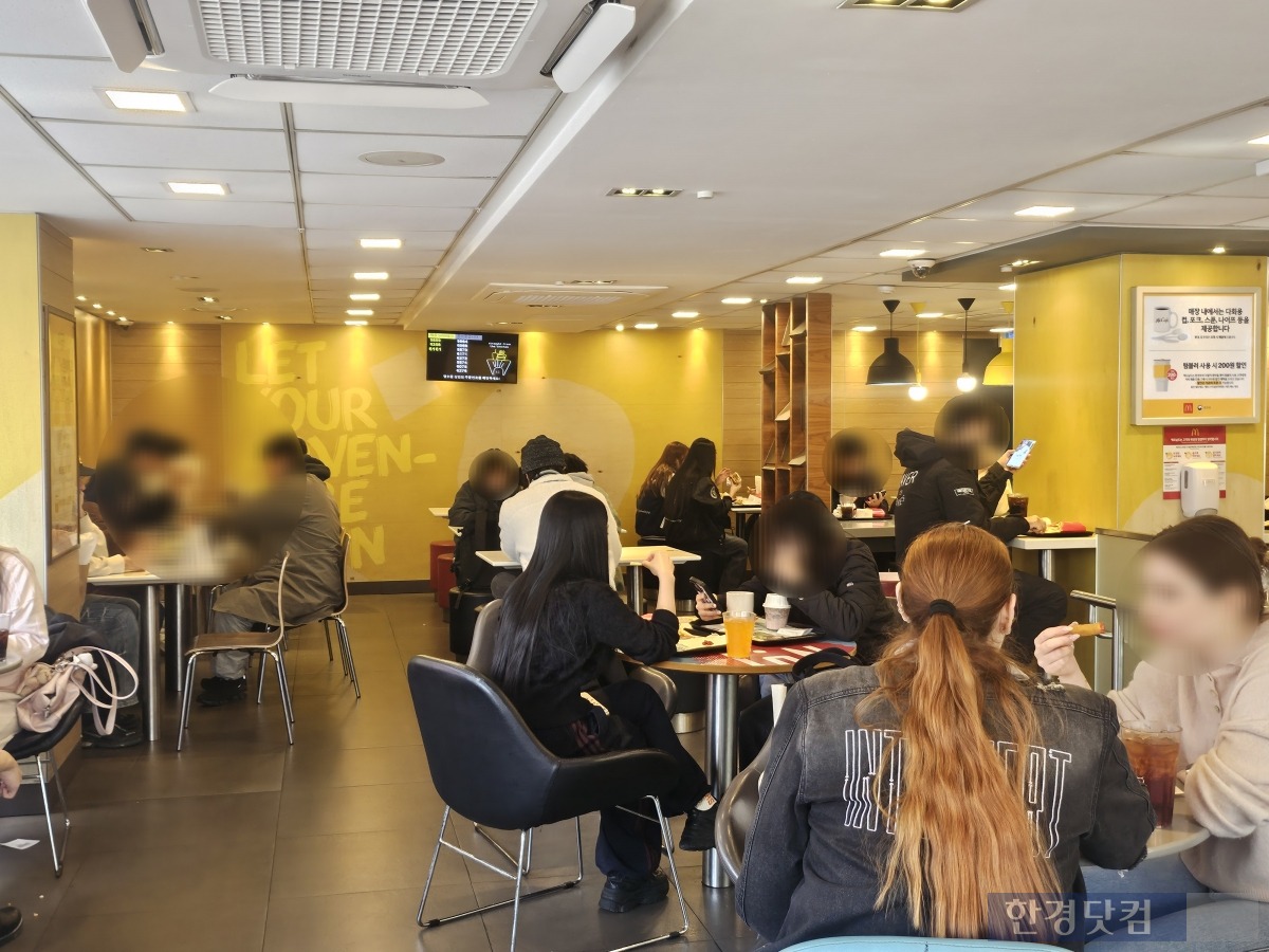 점심시간 직전인 오후 12시 반 무렵, 맥도날드 매장은 2층 건물을 통째로 사용하고 있음에도 좌석이 꽉 차 있었고, 매장안에는 햄버거를 들고 자기가 비워지길 기다리는 대기인원이 가득했다. 학생들이 가방을 옆에 둔 채 햄버거 세트를 먹으며, 빠른 회전율로 자리를 비워주고 있었다.