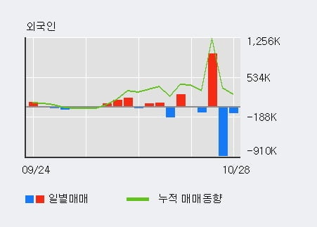 지난 한달을 기준으로 보면 외국인이 19.1만주를 순매수했고, 기관도 1,408주를 순매수했다. 반면 개인들은 17.3만주를 순매도한 것으로 나타났다. 같은 기간 이 종목의 거래비중은 외국인과 개인이 각각 21.5%, 77.1%로 비중이 높다.
