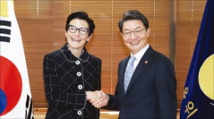 이억원 금융위원장(오른쪽)은 30일 정부서울청사에서 제인 프레이저 미국 씨티그룹 이사회 의장 겸 최고경영자(CEO·왼쪽)와 면담했다. 이 위원장은 이 자리에서 금융당국이 추진 중인 생산적 금융 대전환에 대한 그룹 차원의 지지를 당부했다. 씨티그룹은 금융안정위원회가 발표한 ‘2024 글로벌 시스템적 중요 은행’(29개) 중 상위 3위에 오른 곳이다. 국내에서는 외국계 은행 최초로 지점 및 시중은행을 설립했다.관련뉴스