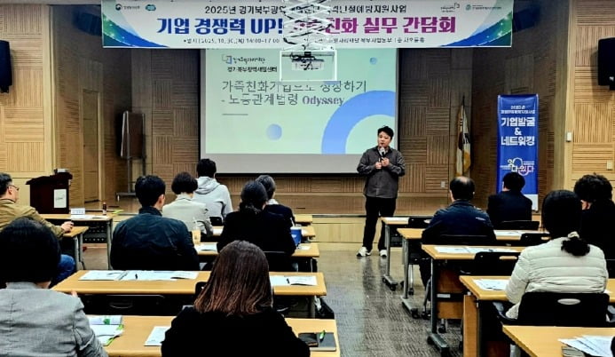 이날 간담회에는 경기북부 지역 기업 대표와 인사담당자들이 참석해 가족친화제도 도입 특강을 듣고, 실제 참여 기업의 사례를 공유했다.