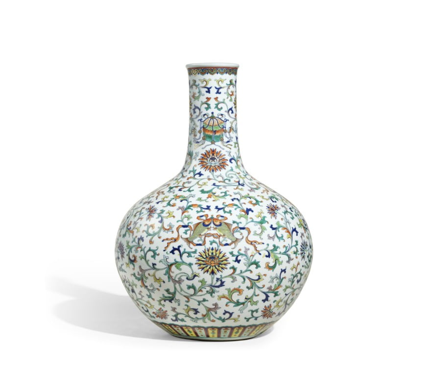 호쿠사이 작품만 있는 것은 아니다. 총 125점이 출품되는데, 추정가만 놓고 보면 ‘파도’보다 윗단에 놓이는 작품이 많다. 눈길을 끄는 건 70점 이상 쏟아지는 중국 도자다. 고대 상나라 후기 제례용 청동기부터 청나라 황실 도자기까지 2000여 년을 아우른다. 청나라 건륭제 시기 황실도자인 ‘청화투채·분채금채 팔길상문 천구병’이 3000만~6000만 홍콩달러(55억~110억 원)로 가장 비싸고, 현재 80여 점만이 존재하는 것으로 알려진 북송 휘종대의 최고급 황실 청자 가마 여요(汝窯) 도자인 ‘북송 여관요 대형 완’도 2000만~4000만 홍콩달러(37억~73억원)에 새 주인을 찾는다.