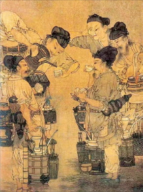 청나라가 전국시대를 통일한 이후로는 음용의 시기가 왔다. 당시 노예매매계약서인 ‘동약(?約)’에도 노예가 해야 할 일 중 ‘매일 차를 우릴 것, 멀리 무양까지 가서 차를 사올 것, 차 도구를 정성스레 관리할 것’ 등이 적혀 있다. 위진남북조시대까지 차는 귀족계급이 마시는 기호음료였으나 당나라 땐 차를 마시는 풍조가 대중화되면서 길거리 곳곳에 찻집들이 생겨났다.차 문화는 송대에 와서 더욱 화려한 문화로 발전했다. 송의 차 문화는 중국 역사상 절정이었다. 황실이 음다문화를 주도하면서 차와 관련한 문화와 놀이가 대중의 일상으로 급속히 번져 나갔다. 문인들은 찻자리에 거문고, 바둑, 글, 그림, 책을 갖추고 차의 문화적 품격을 한껏 높였다. 특히 송대에는 점차법(點茶法)이 유행했는데, 후에 일본으로 건너가 말차가 됐다. 덩어리차(단차)를 곱게 가루내 뜨거운 물을 붓고 차선으로 격불해 하얀 거품이 찻잔 가득 수북이 올라와 봉긋하게 머물러 있게 한 뒤 차를 부드럽게 마시는 방법. 정교한 점다 기예를 겨루는 ‘투차(鬪茶)’놀이가 크게 유행할 정도였다. 찻잔의 거품 위에 붓으로 찻물을 찍어 그림을 그리거나 글을 써서 감상하는 ‘차백희(茶百?)’라는 놀이도 있었다. 지금의 ‘라테아트’가 이미 송대 초에 있었던 것이다.