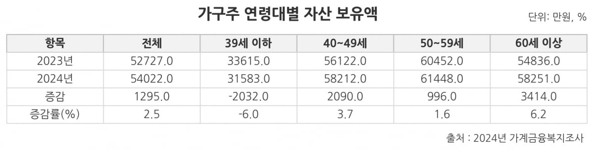 통계청의 2024년 가계금융복지조사 결과에 따르면, 가구주 연령대별 평균 자산은 전년 대비 39세 이하에서는 6.0% 감소했다. 40대 이상 세대에서는 모두 자산 보유액이 늘어난 것과 비교하면 39세 이하의 자산 감소 현상은 더욱 대조된다.
