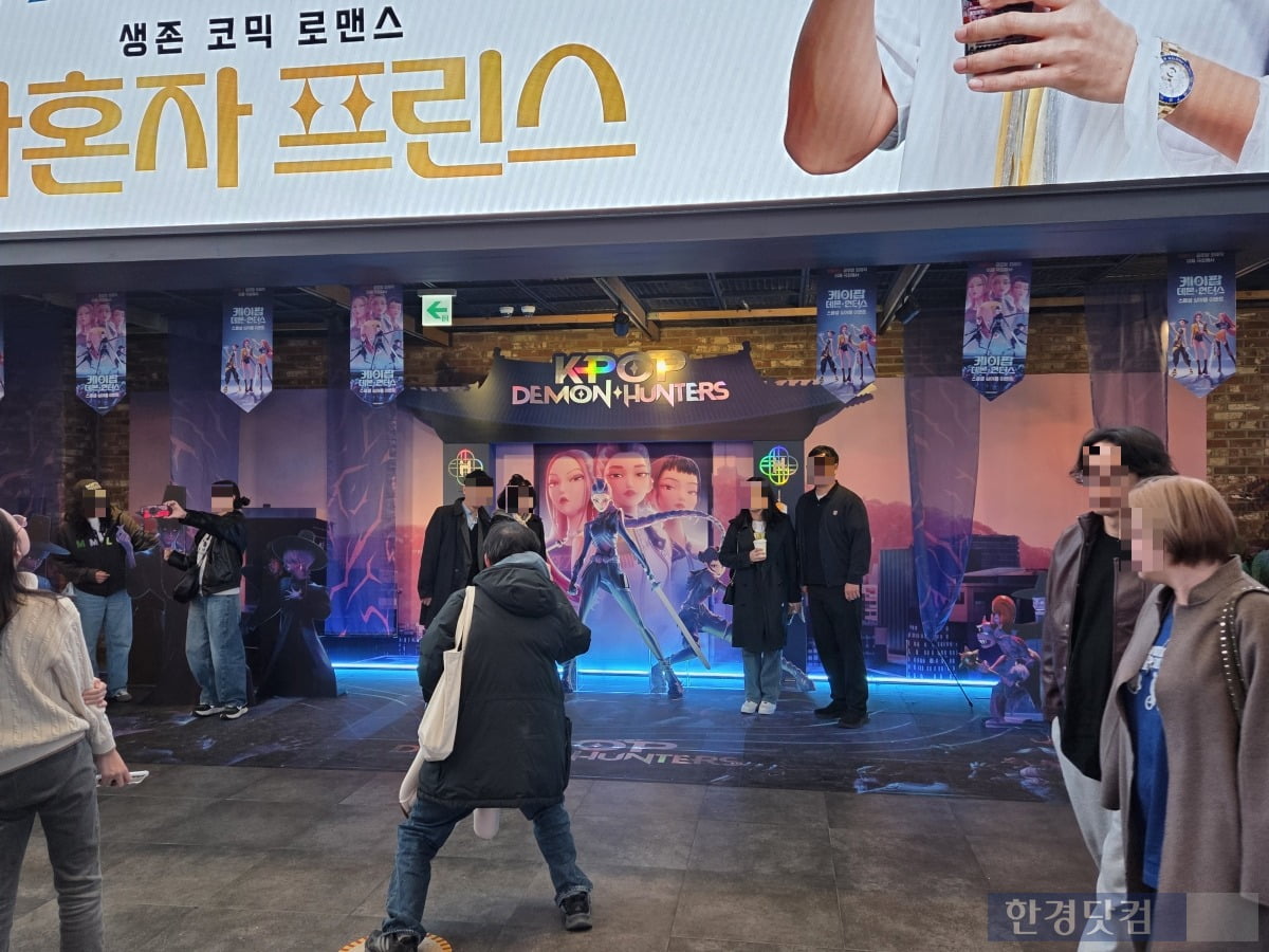 지난 2일 서울 용산구에 있는 한 CGV 매장. 입구에는 '케이팝 데몬 헌터스'(케데헌)의 등장인물 ‘헌트릭스’와 ‘사자보이즈’의 입간판이 세워져 있었고 그 앞에 선 관객들이 저마다 포즈를 취하며 사진 촬영에 여념이 없었다. 곳곳에 작품 주인공 ‘루미’와 같은 복장을 한 팬들이 눈길을 끌었다. 케데헌 응원봉을 들고 인증샷을 남기는 모습도 보였다. 이날 극장은 친구, 연인뿐 아니라 가족 단위 관람객도 평소보다 더 눈에 띄었다.