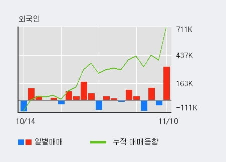 지난 한달을 기준으로 보면 외국인이 60.8만주를 순매수했고, 기관도 39.7만주를 순매수했다. 반면 개인들은 100.5만주를 순매도한 것으로 나타났다. 같은 기간 이 종목의 거래비중은 외국인과 개인이 각각 33.6%, 54.4%로 비중이 높다.