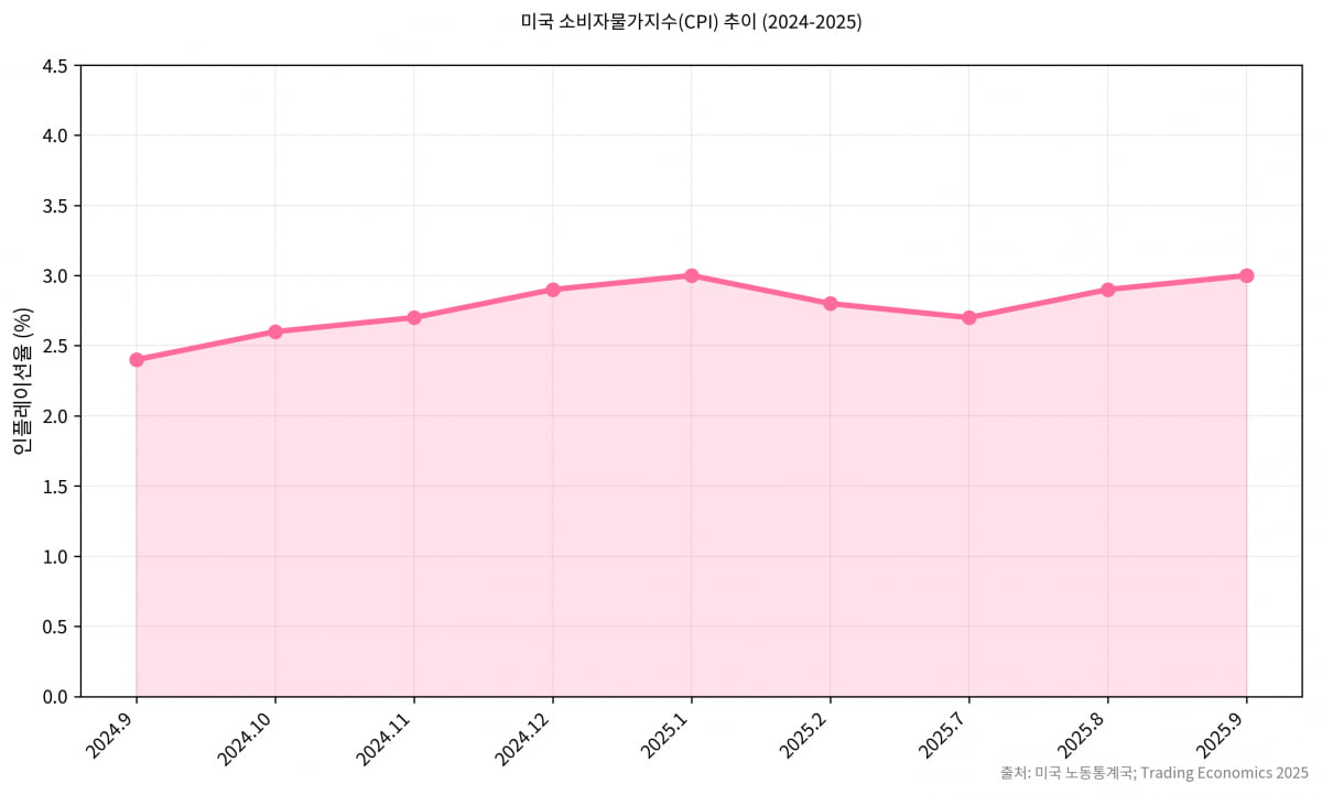 최근 거시 경제 지표상 인플레이션 위기는 정점을 지났다는 평가다. 미국 노동통계국(BLS) 기준 지난 9월 미국 소비자물가지수(CPI) 상승률은 3.0%로 안정화됐다. 그러나 소비자가 체감하는 주관적 '가격 피로감'은 '끈적하게(sticky)' 남았다는 지적도 있다.