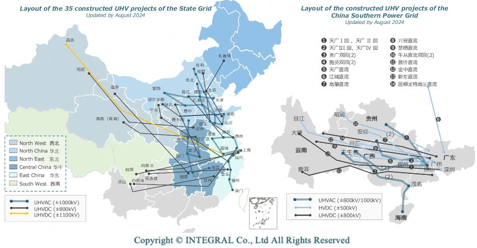 인민망에 따르면 지난달까지 중국에 건설된 800kV 이상 초고압직류전선(HVDC)은 총 46개로 4만㎞가 넘는다. 지구를 한 바퀴 두를 수 있는 규모다.