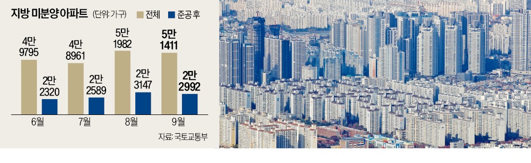 정부는 LH(한국토지주택공사)의 미분양 직매입과 주택도시보증공사(HUG)를 통한 ‘미분양 안심환매’ 등으로 지방 미분양 해소에 노력하고 있다. 그러나 LH의 1차 직매입 예정 물량은 목표치(3000가구)에 크게 못 미치는 733가구에 그쳤다. 가격 조건을 완화하고 계획 물량을 늘려 2차 매입에 나섰지만 시장의 반응은 여전히 냉담하다.