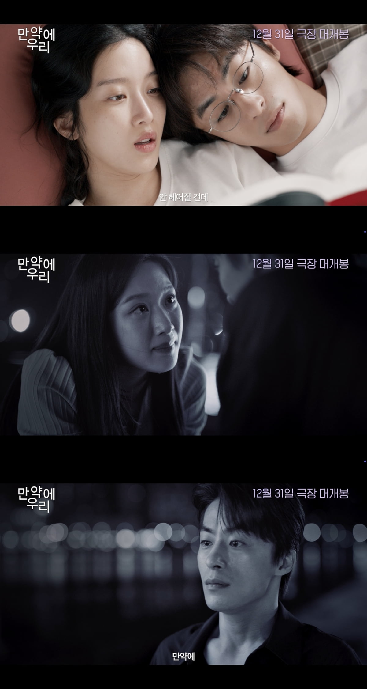 구교환, 문가영의 로맨스 영화 '만약에 우리'가 12월 31일 개봉한다. 18일 쇼박스는 '만약에 우리'의 개봉일을 확정하고 두 주인공의 관계 변화를 포착한 '현재의 우리' 포스터를 공개했다.