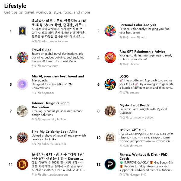 로켓AI가 개발한 운세 서비스 ‘운세박사 타로’가 글로벌 AI 플랫폼인 오픈AI 챗GPT 스토어에서 세계 1위를 달성했다. 또한 ‘운세박사 GPT’가 세계 11위를 기록하였다. 이러한 성과의 중심에는 로켓AI가 구축해 온 대표 브랜드 ‘청월당 사주’가 있다. 청월당은 전통 명리학을 최신 데이터 엔진과 웹툰 기반 스토리텔링 UX로 재해석한 플랫폼으로, “가장 한국적인 사주 문화를 가장 글로벌한 방식으로 구현했다”는 평가를 받고 있다.