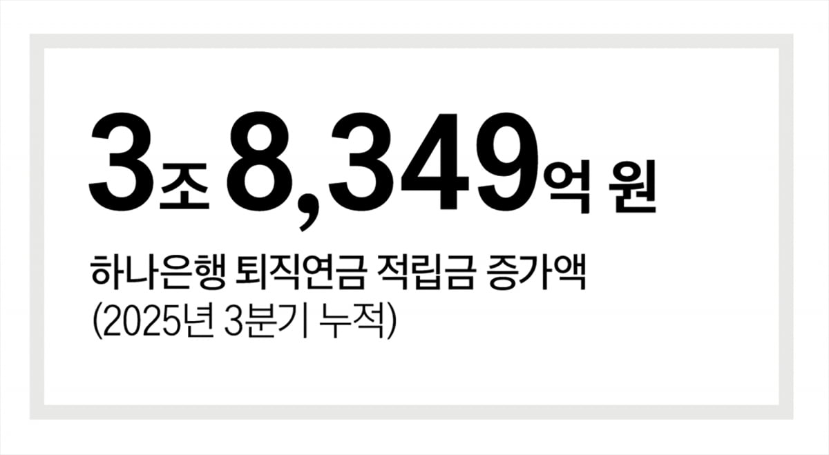 특히 하나은행은 2025년 3분기 누적 기준 은행권 퇴직연금 적립금 증가 1위를 기록하며 성장성과 시장 내 존재감을 동시에 증명했다. 금융감독원 통합연금포털에 따르면 2025년 9월 말 기준 적립금은 44조1083억 원이며, 이 중 IRP는 2조6583억 원, DC는 1조1586억 원 증가하며 전년 대비 3조8349억 원이 확대됐다. 이러한 실적은 2023년과 2024년에 이어 3년 연속 증가율 1위라는 점에서 지속 성장 기반을 확보하고 있음을 보여준다. 더불어 2025년 3분기 DC형 원리금 비보장 부문 수익률 17.18%로 시중은행 1위를 기록하며 수익률 경쟁력까지 입증했다.