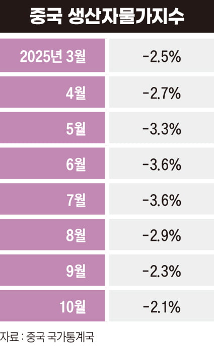 막대한 첨단기술 투자가 내수 공백을 메우지 못해 중국 경제가 쉽게 회복되지 않을 것이란 암울한 전망도 나온다. 중국 국가통계국에 따르면 올 10월 PPI는 전년 동월 대비 2.1% 하락했다. 중국 PPI는 2022년 10월부터 37개월째 마이너스를 기록 중이다.