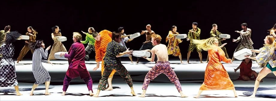 그 감성은 급기야 객석까지 점유한다. 1막 마지막 장면에서 무용수들은 무대에서 내려와 객석 의자 위로 이동하기 시작한다. 무대와 객석을 나누는 ‘프로시니엄 극장’의 한계를 무너뜨리는 시도는 최근 부쩍 늘어나긴 했지만, 객석 통로가 아니라 관객이 앉아 있는 의자로 올라가는 경우는 흔치 않다. 관객 사이에 깊게 개입해 들어가는 시도는 관객을 무대의 방관자가 아니라 작품을 완성하는 적극적인 참여자로 둔갑시킨다. 관객도 이 공동체의 일원이 돼 무용수들과 사진을 찍는 등 유례없는 유쾌한 상황이 연출된다.