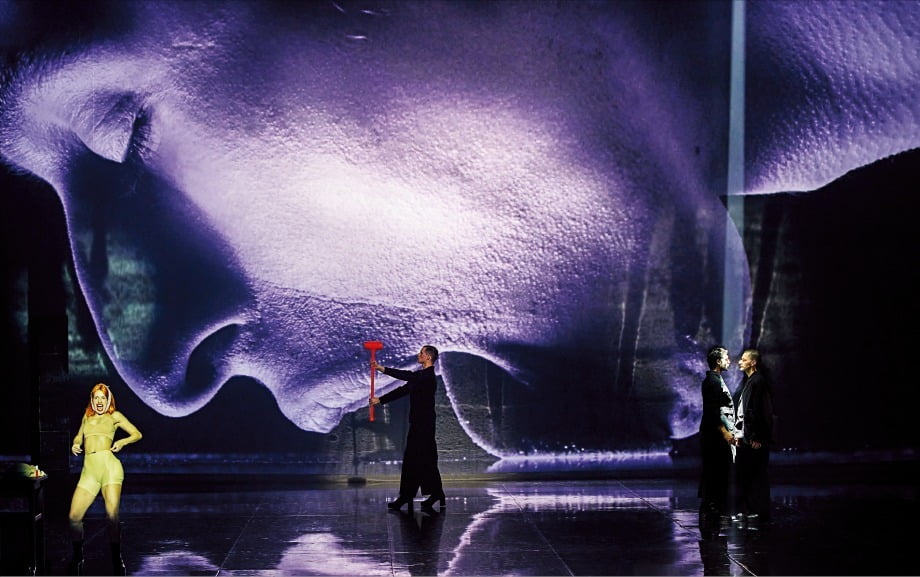 작품에서 시대가 변하는 순간마다 한 여인이 상징적으로 등장해 바닥에 엎드려 다리 한쪽을 까딱거리다가 사라진다. 1막의 시작점에는 누드톤 의상을 입은 여인이 나왔고, 이후 화려한 색의 의상을 입은 여인이 등장했다. 2막에서는 검정 의상에 선글라스를 끼고 등장하고, 마지막에는 고양이 탈을 쓴 여인이 나와 같은 포즈를 취하며 막이 내린다. 이 마지막 장면을 어떻게 받아들일까. 에크만은 그 해석을 관객에게 넘겼다.