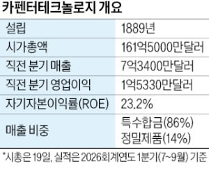 1889년 설립된 카펜터테크놀로지는 스테인리스 스틸, 부식 방지 니켈, 티타늄 합금 등을 제조하는 특수합금 사업과 파우더 메탈 등을 만드는 고성능 정밀제품 사업을 한다. 이 중 특수합금 부문이 전체 매출의 86%를 차지한다. 이 회사가 생산하는 특수합금은 항공기, 전투기, 미사일 등에 주로 쓰인다.
