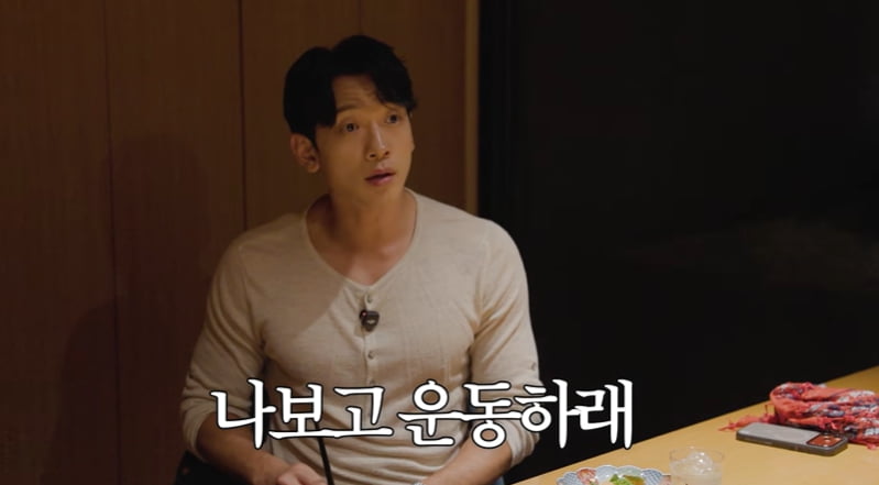 비는 "나는 건강검진 받았는데 고지혈증 있다고 한다. 나보고 운동하라더라"며 "아니 선생님, 제가 여기서 운동을 어떻게 더해요라고 했다. 유산소 운동을 하라더라"고 말했다.