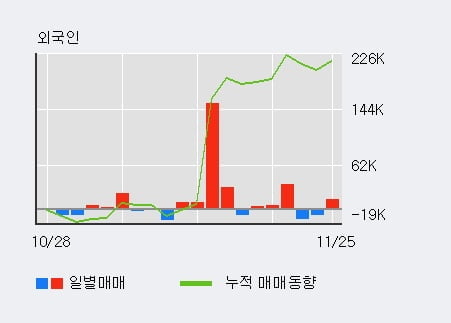 지난 한달을 기준으로 보면 외국인이 24.6만주를 순매수한 반면, 기관은 2.9만주를 순매도했고, 개인들도 20.0만주를 순매도한 것으로 집계됐다. 같은 기간 이 종목의 거래비중은 외국인과 개인이 각각 33.4%, 62.9%로 비중이 높다.