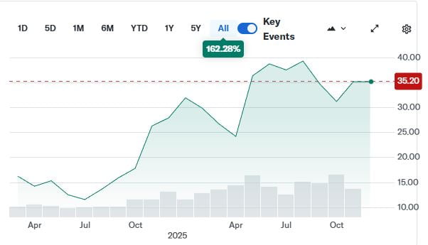 21일 뉴욕증권거래소에서 아머스포츠는 1.18% 하락한 34.35달러에 거래를 마쳤다. 이날 조정에도 최근 한달 사이 주가는 11.24% 상승했다. 지난해 2월 뉴욕증권거래소(NYSE)에 상장한 이후 주가는 129.77% 급등했다.